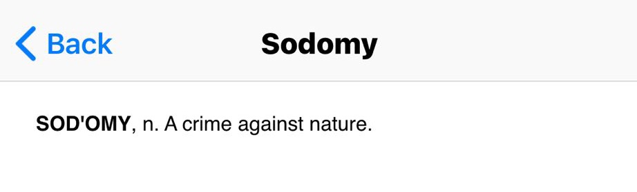 Sodomy is called a crime against nature in Websters 1828 dictionary. In 1960, sodomy was illegal in every U.S. state. As of 2023 their are only 14 states with sodomy laws. Sodomy is a perverted practice.