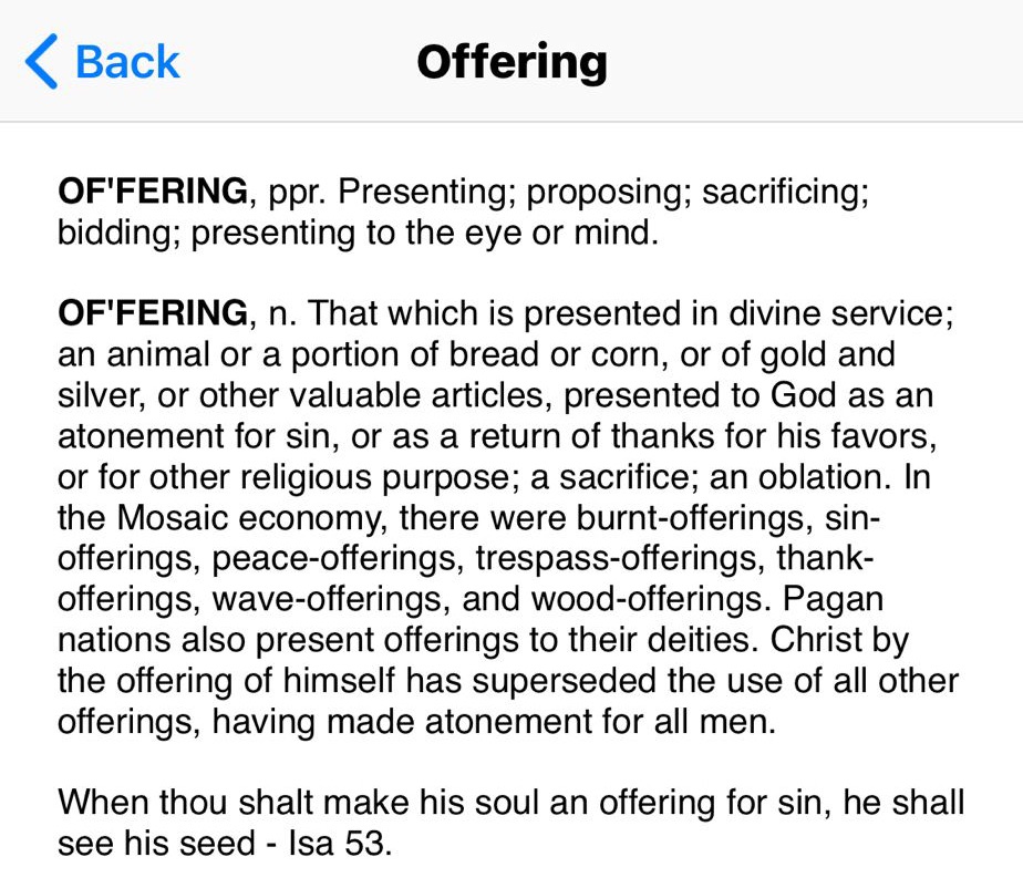 Offering definition Websters 1828 definition